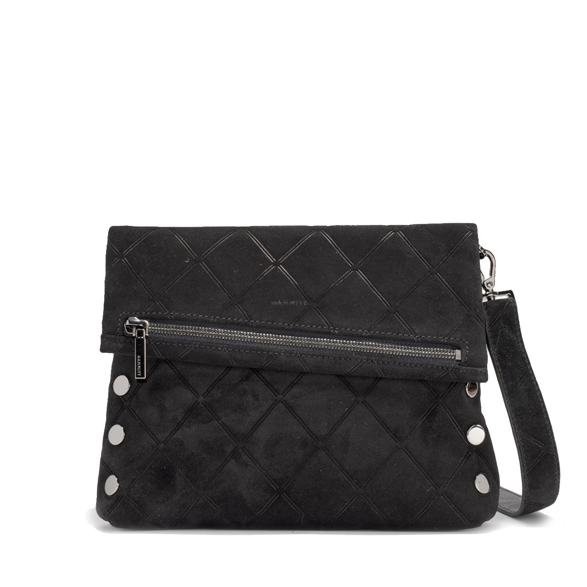 A luxurious upgrade to our classic, favorite Italian suede, we incorporate a unique doubled diamond embossing effect, which allows the deep black color to partner with the top finish bringing further visual interest to the drape. We came across this pattern in Milan and hand selected it for its ability to hold rich, saturated, and deep color. The best part? This soft, Italian suede is FULLY COLOR AND HEAT TREATED. Meaning it should not fade in the fun and it should not absorb other colors, nor bleed! Did your bag get wet? No problem, just let air dry, then use a soft brush to restore fibers to their original position. Created in Silver Rated family owned and operated tannery in Florence. This material is a true luxury in every sense.