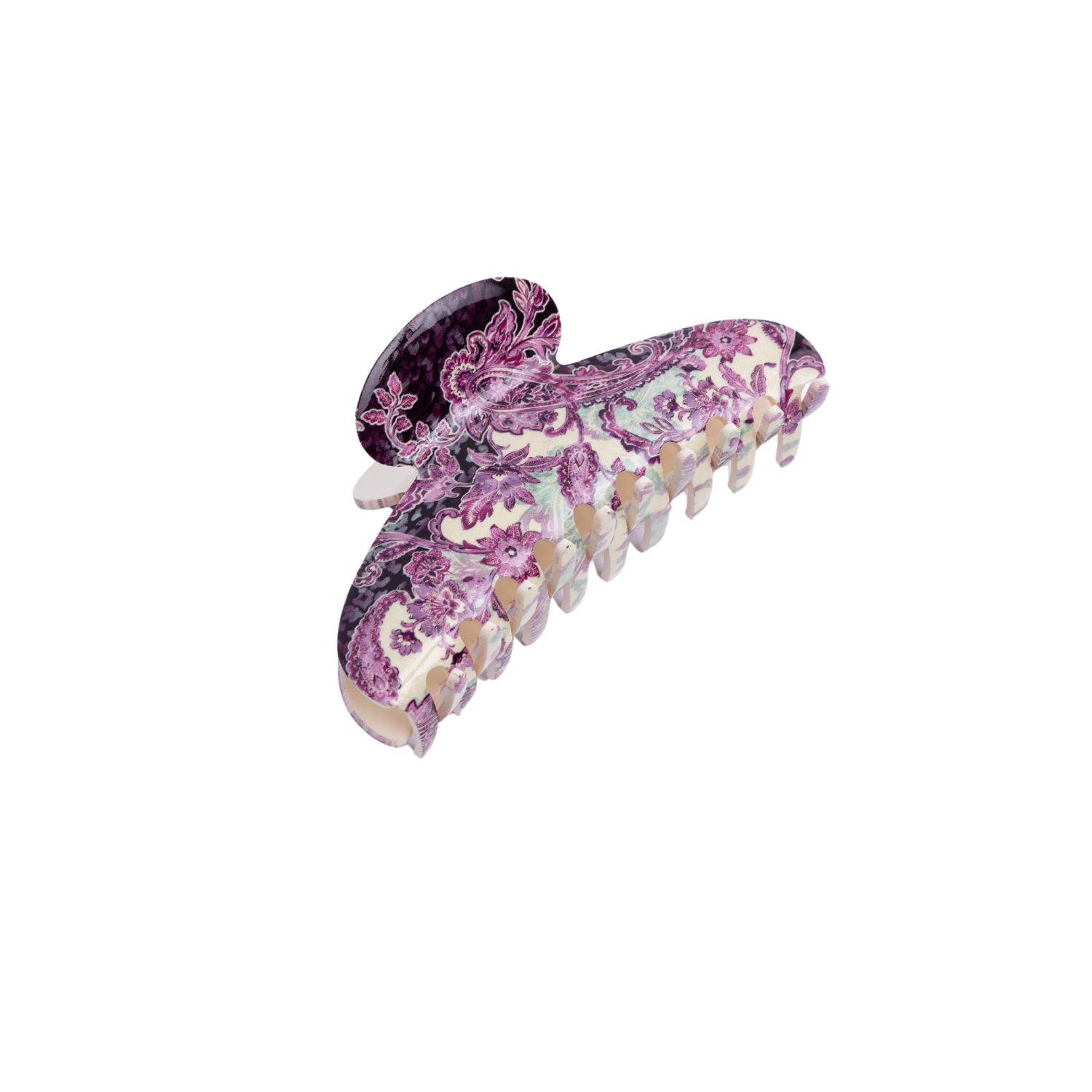Featuring bold floral and paisley details in deep purple, the Anzio Hairclip elevates your casual style. Crafted from a durable material with a glossy finish, this playful accessory is equal parts functional and fun. This clip perfectly pulls up the sides of your hair or adds the finishing touch to a loose chignon twist.