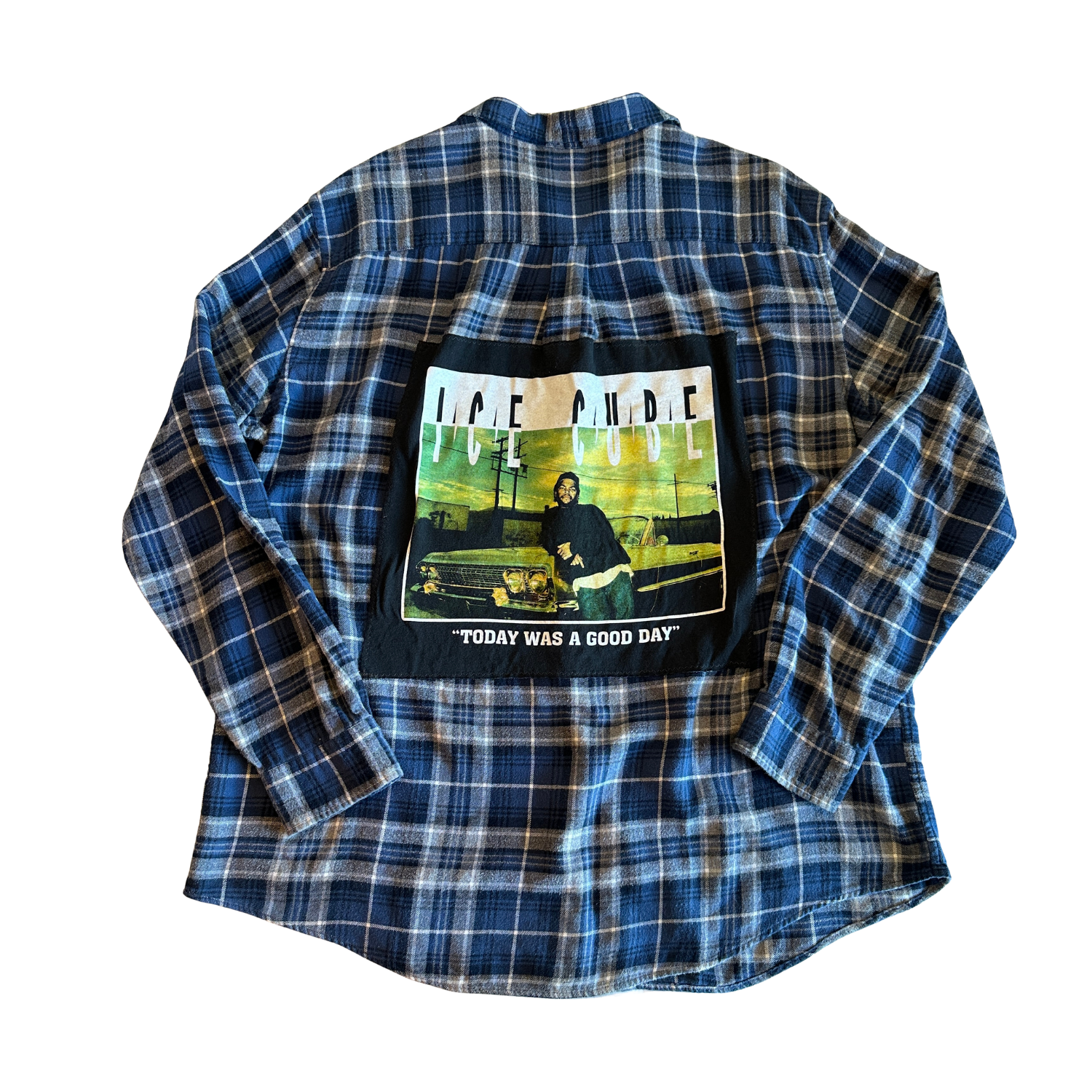 Each piece is a custom, one-of-a-kind flannel shirt, sourced and then reworked with authentic vintage graphics stitched onto the back.