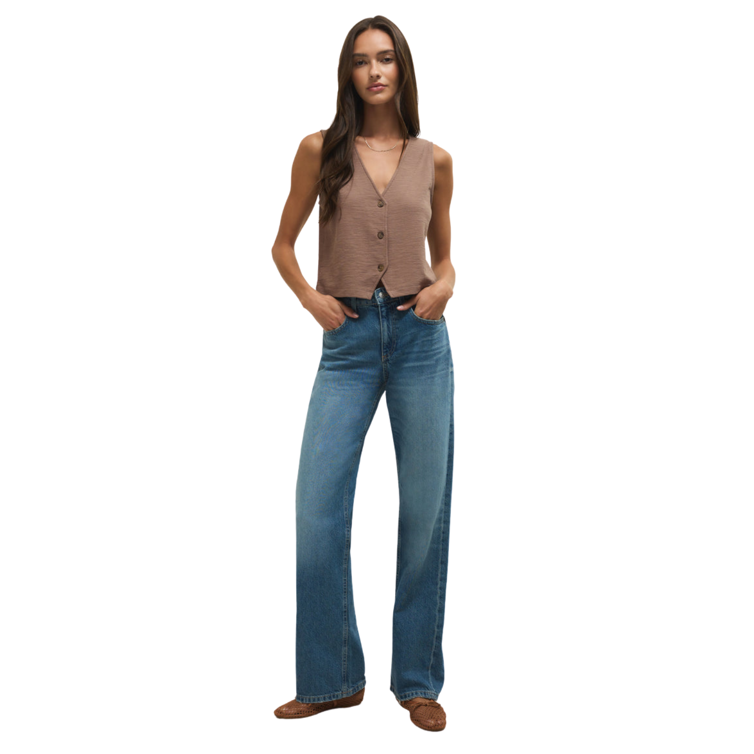 Detailed with a button front, v-neck, and lightweight textured knit fabric, this sleeveless top will be a forever staple in your wardrobe. Make it your go-to outfit with its matching pant or denim.