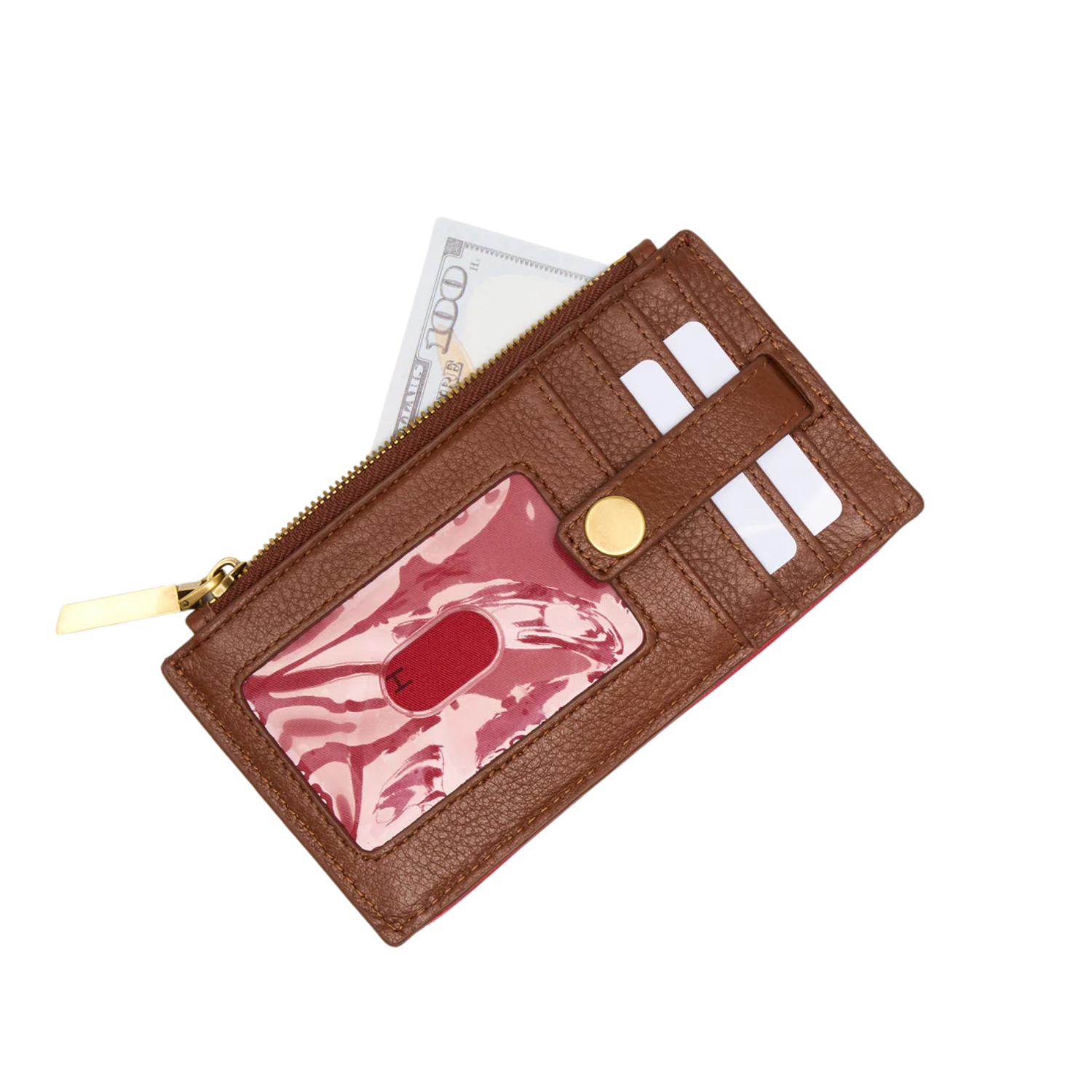 Your schedule is booked. That's why we've created one essential wallet that conquers every calendar entry. Stash credit and transit cards in up to 8 secure slots, and store meter change in one zippered pocket. Plus, enjoy a transparent ID slot when that cute bouncer asks for a peek at your license.