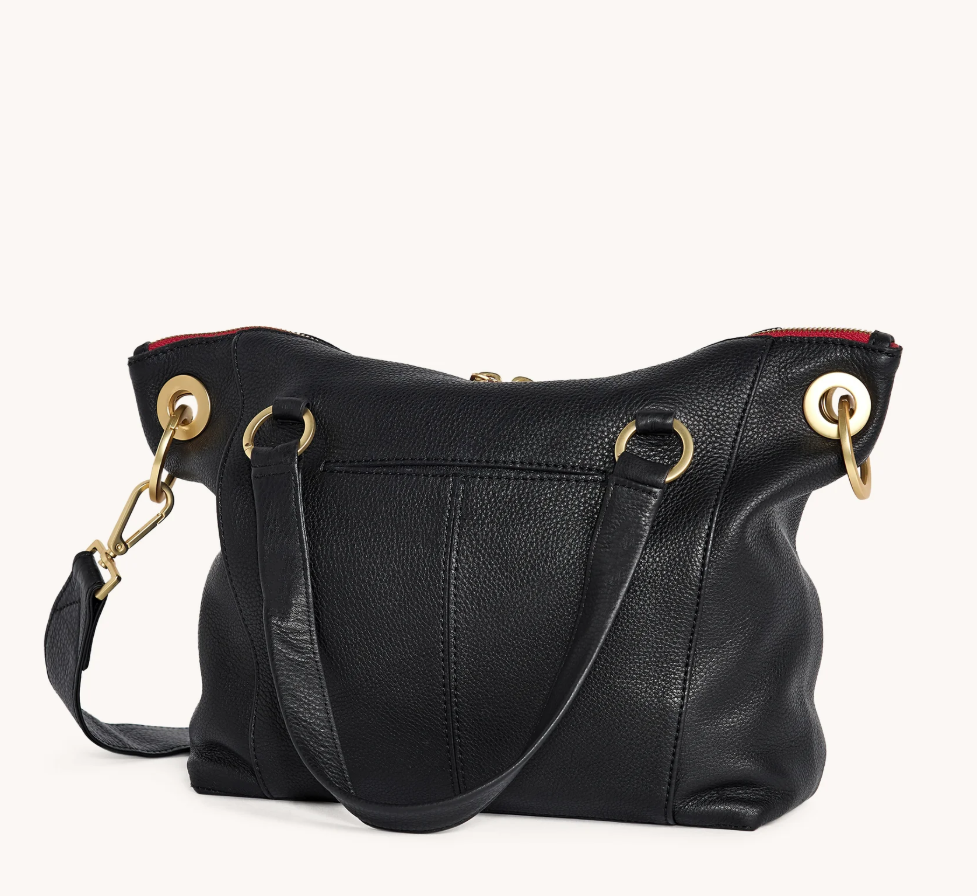 - Top handles and removable, adjustable crossbody strap
