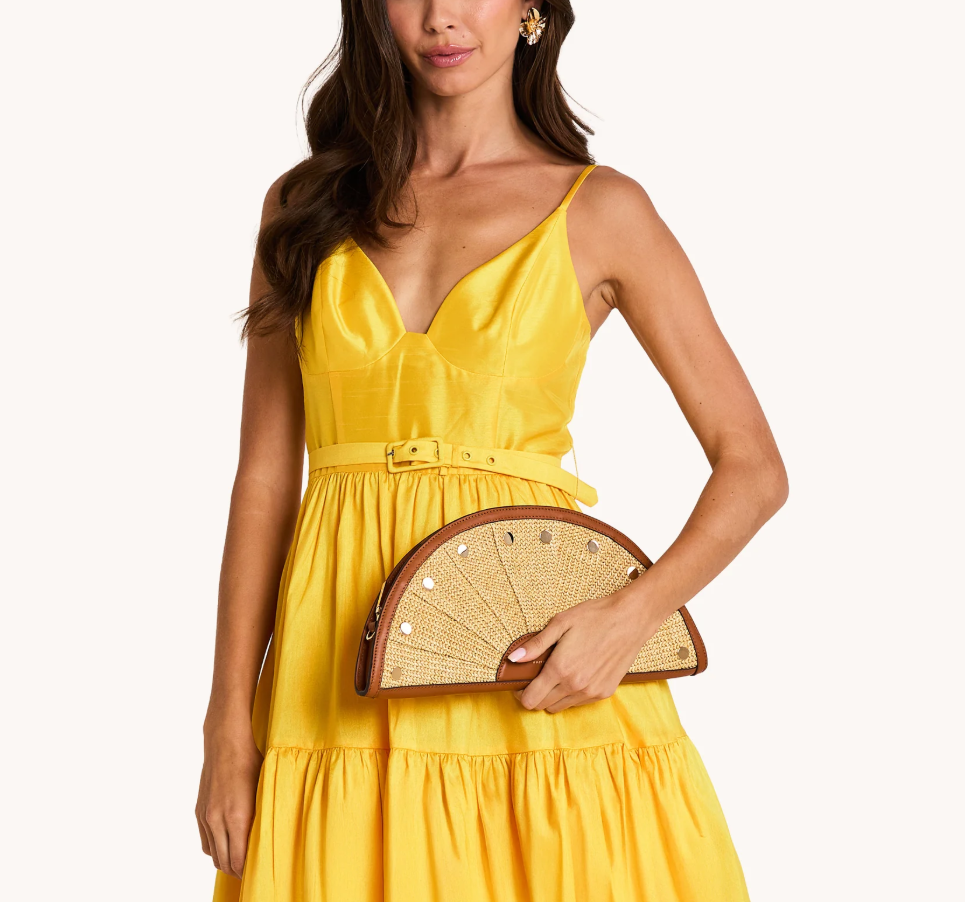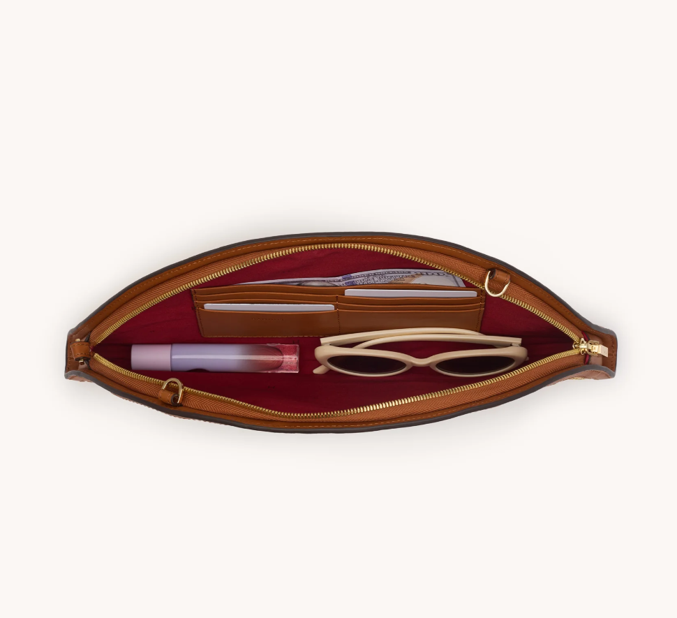 Introducing the Shelley Clutch – an oversized, structured statement piece inspired by the graceful curves of seashells and handmade fans. With its striking paneling and voluminous pleated silhouette, this clutch is designed to turn heads and is perfect for special occasions or adding a unique touch to your everyday looks. Both versatile and functional, the Shelley can be hand-carried, tucked under your arm, or worn as a crossbody with the detachable strap. The D-ring attachment on the left exterior offers endless personalization possibilities, making this clutch just as unique as you.