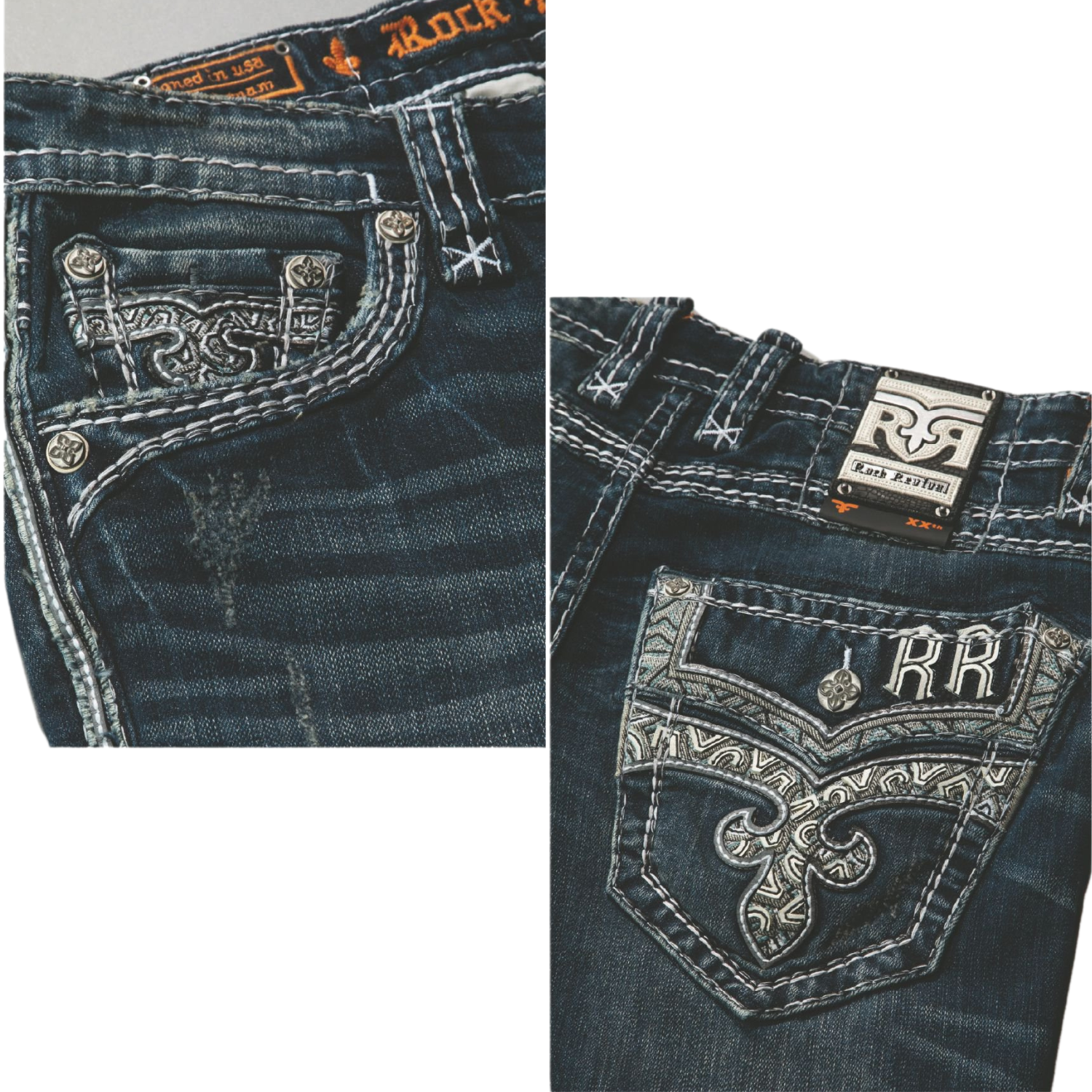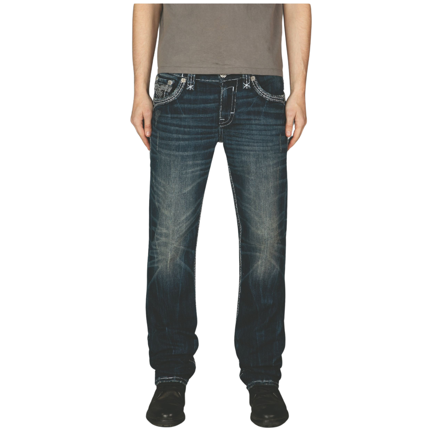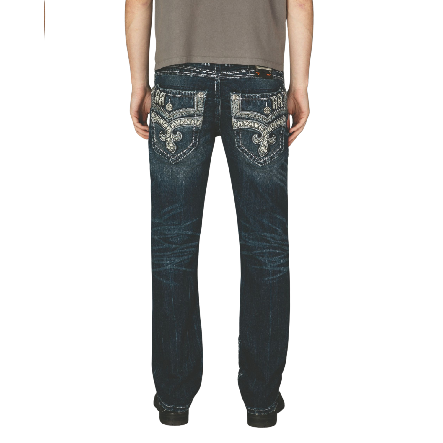 Landyn Straight Jeans by Rock Revival with a straight-leg silhouette crafted in a medium indigo wash, designed in Los Angeles.
