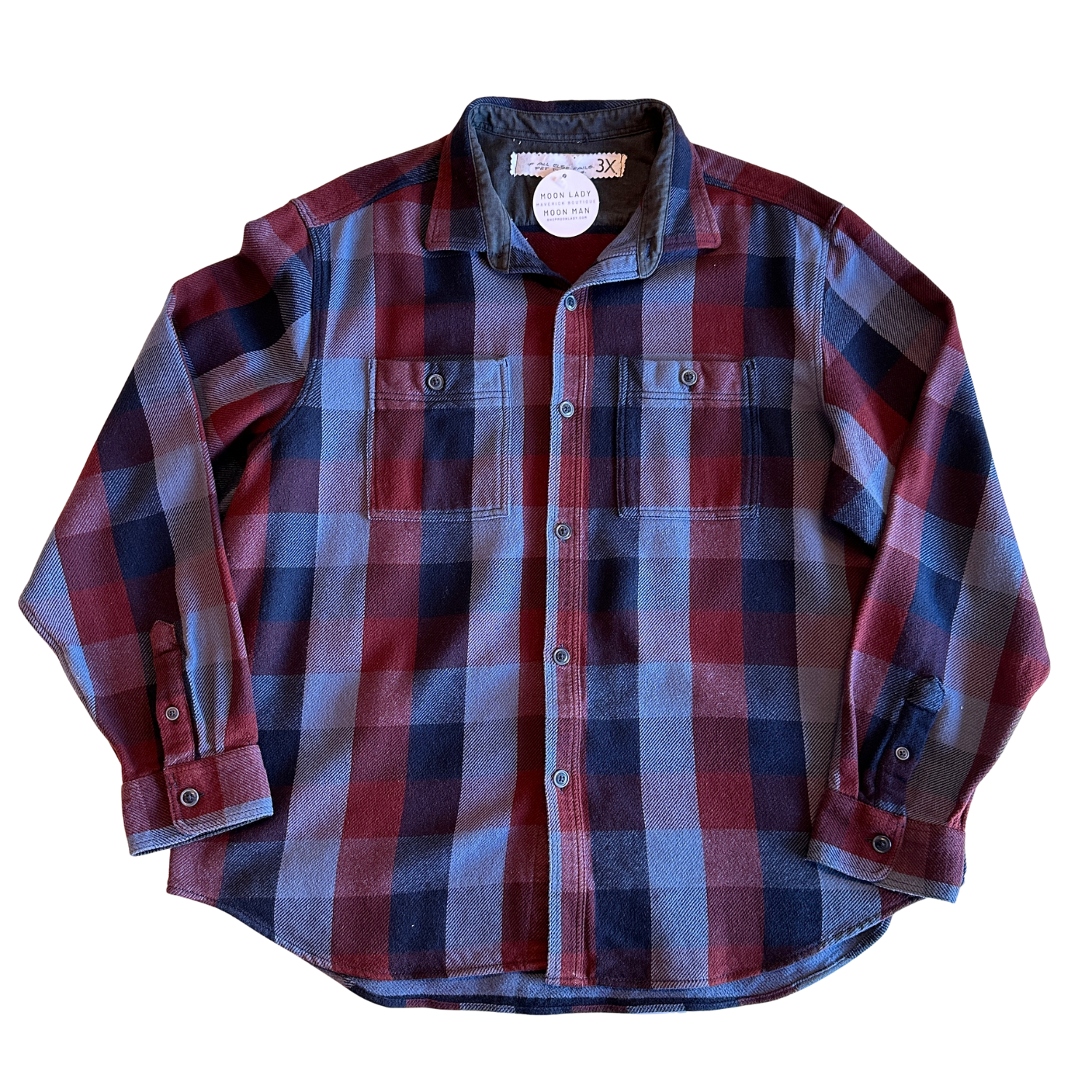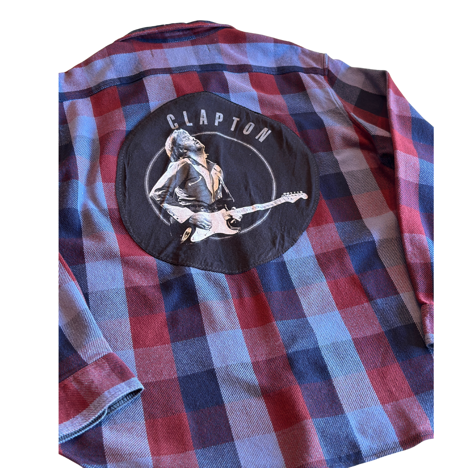 Each piece is a custom, one-of-a-kind flannel shirt, sourced and then reworked with authentic vintage graphics stitched onto the back.