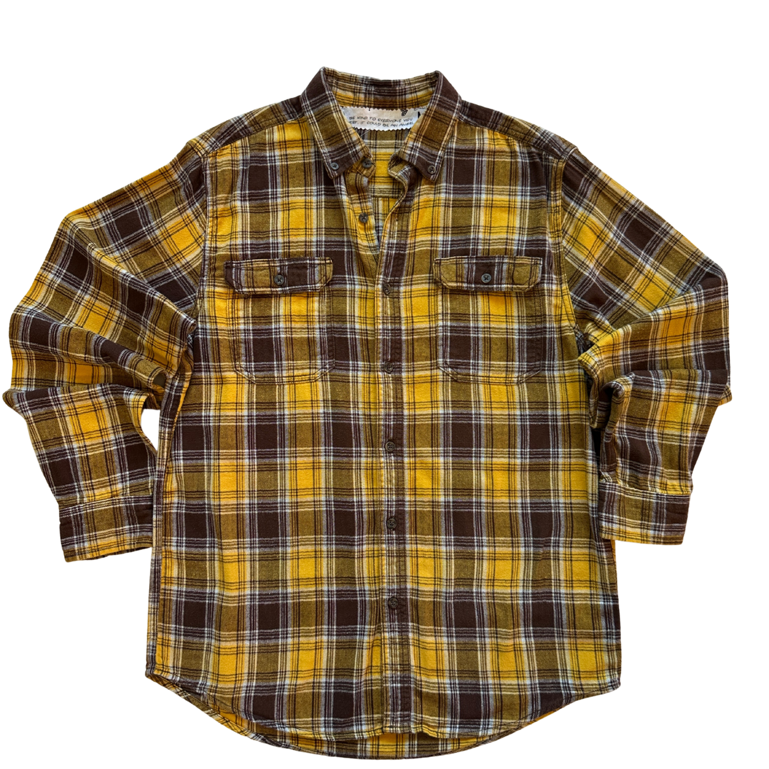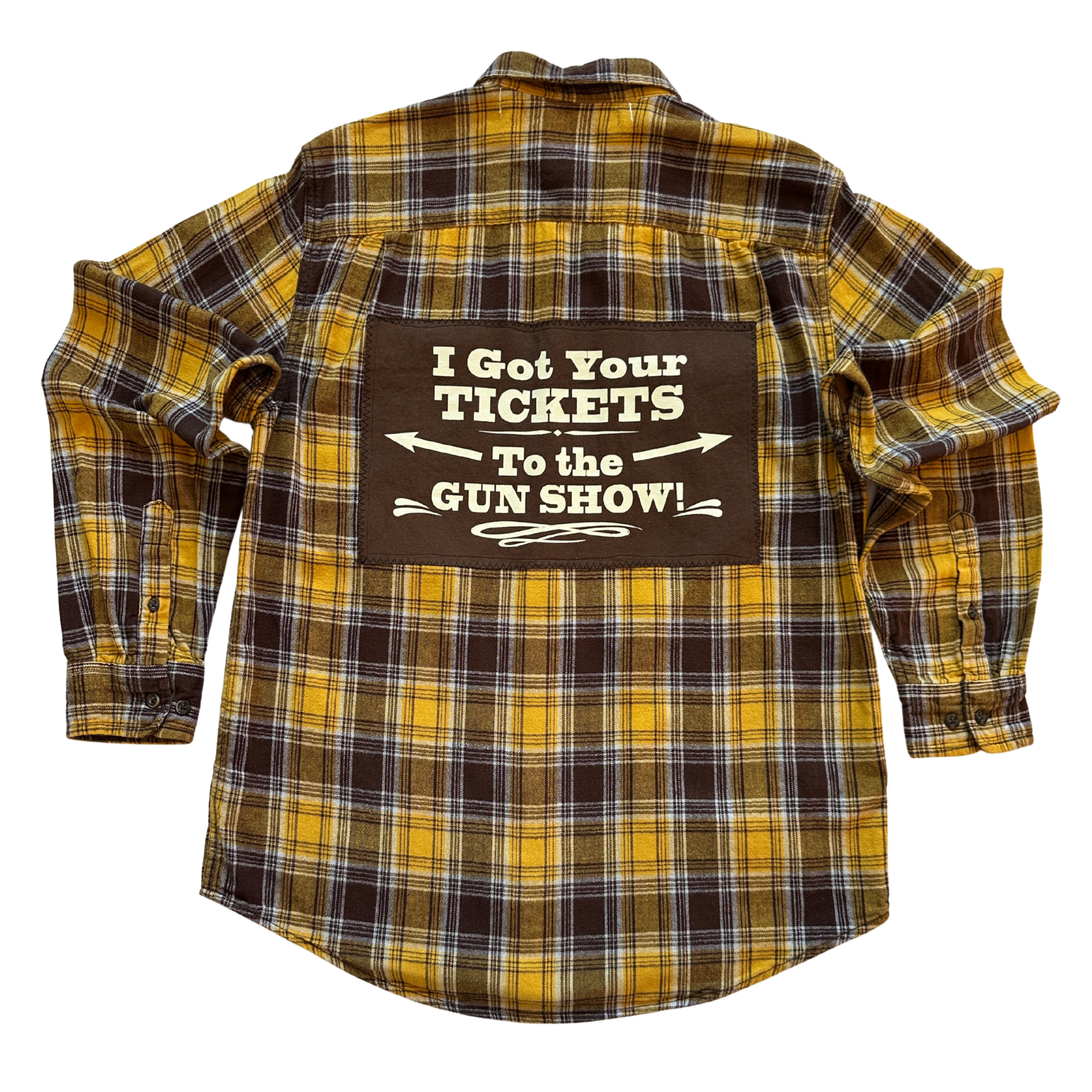 Each piece is a custom, one-of-a-kind flannel shirt, sourced and then reworked with authentic vintage graphics stitched onto the back.
