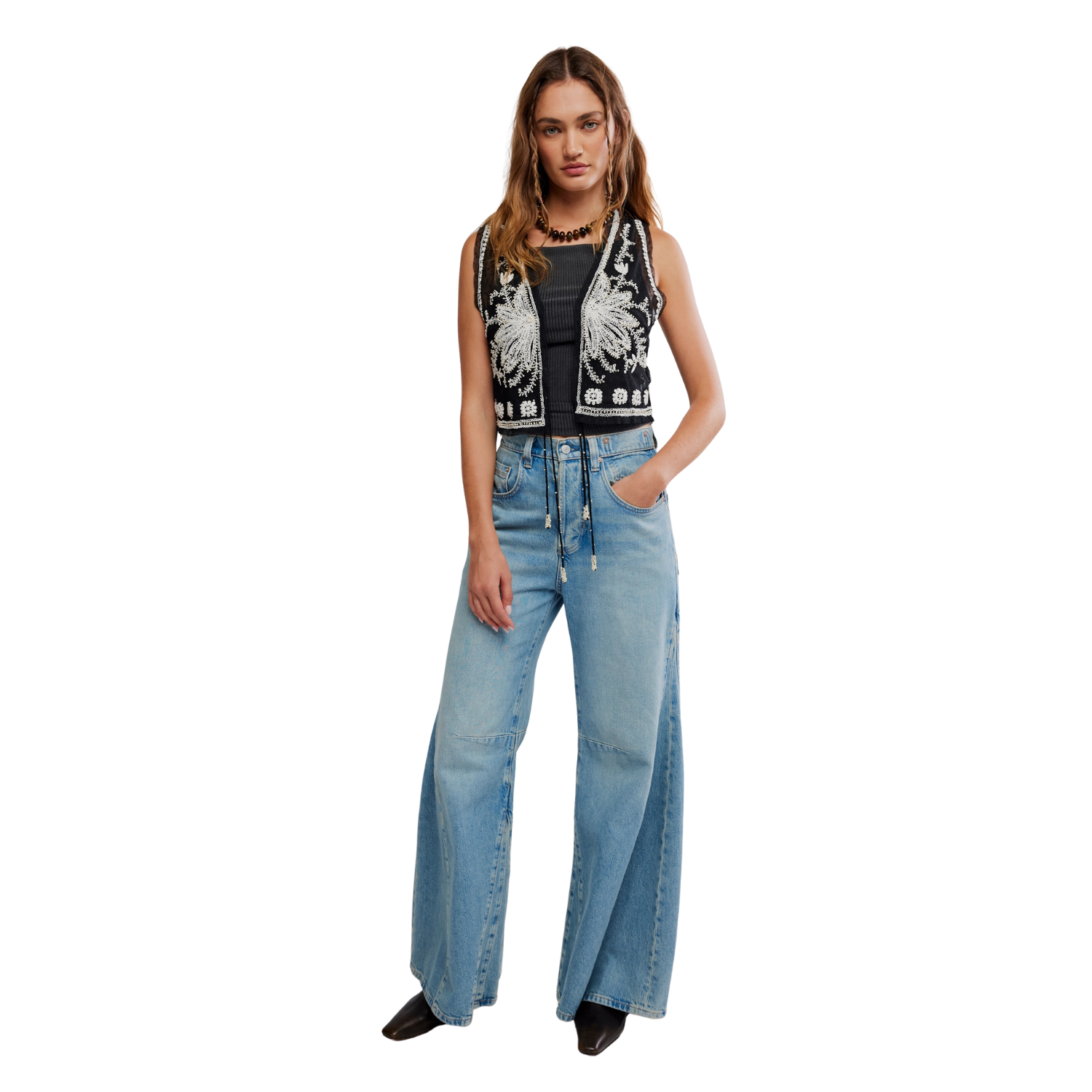 So dreamy and delicate, this vest features a semi-sheer tulle fabrication, stunning embroidered details, and a tie-front closure for the perfect elevated layering piece.