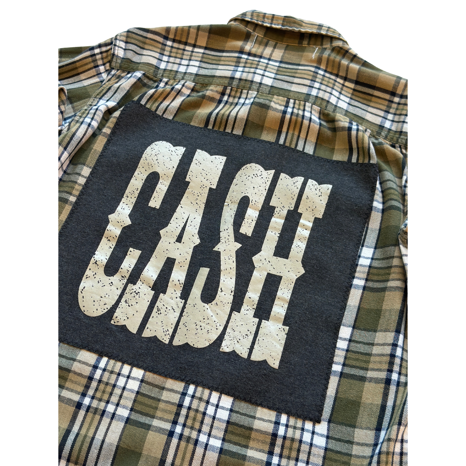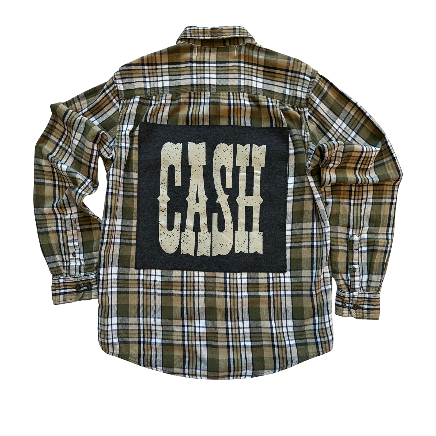 Each piece is a custom, one-of-a-kind flannel shirt, sourced and then reworked with authentic vintage graphics stitched onto the back.