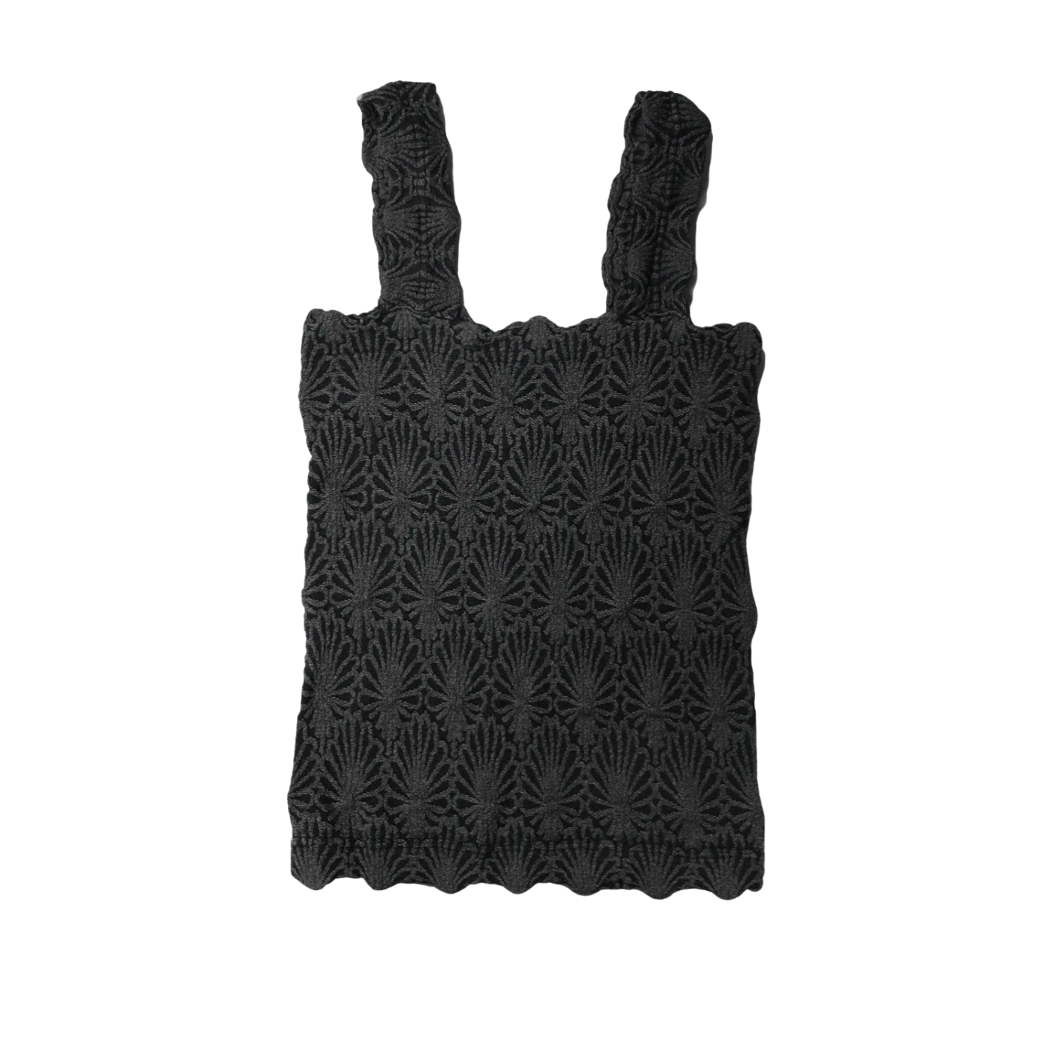 The Lace Textured Square Top has a feminine and elegant design with a delicate lace texture and a flattering square neckline. It enhances the neckline and creates a sophisticated silhouette, making it a versatile piece for both casual and dressy looks.