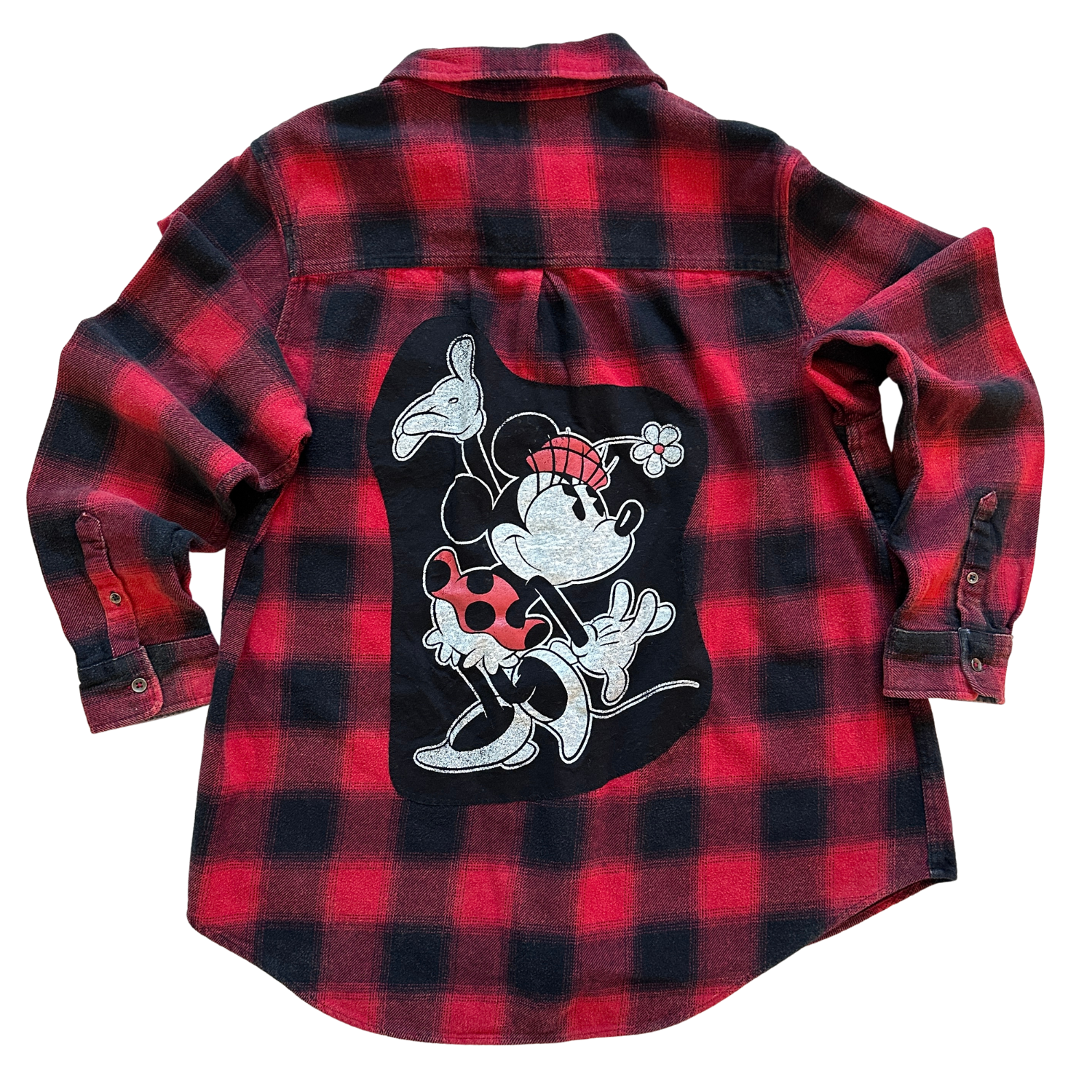Each piece is a custom, one-of-a-kind flannel shirt, sourced and then reworked with authentic vintage graphics stitched onto the back.