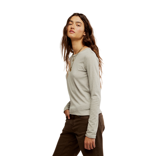 This tee features a soft heathered fabrication and perfectly laidback silhouette with raised seams for added texture.