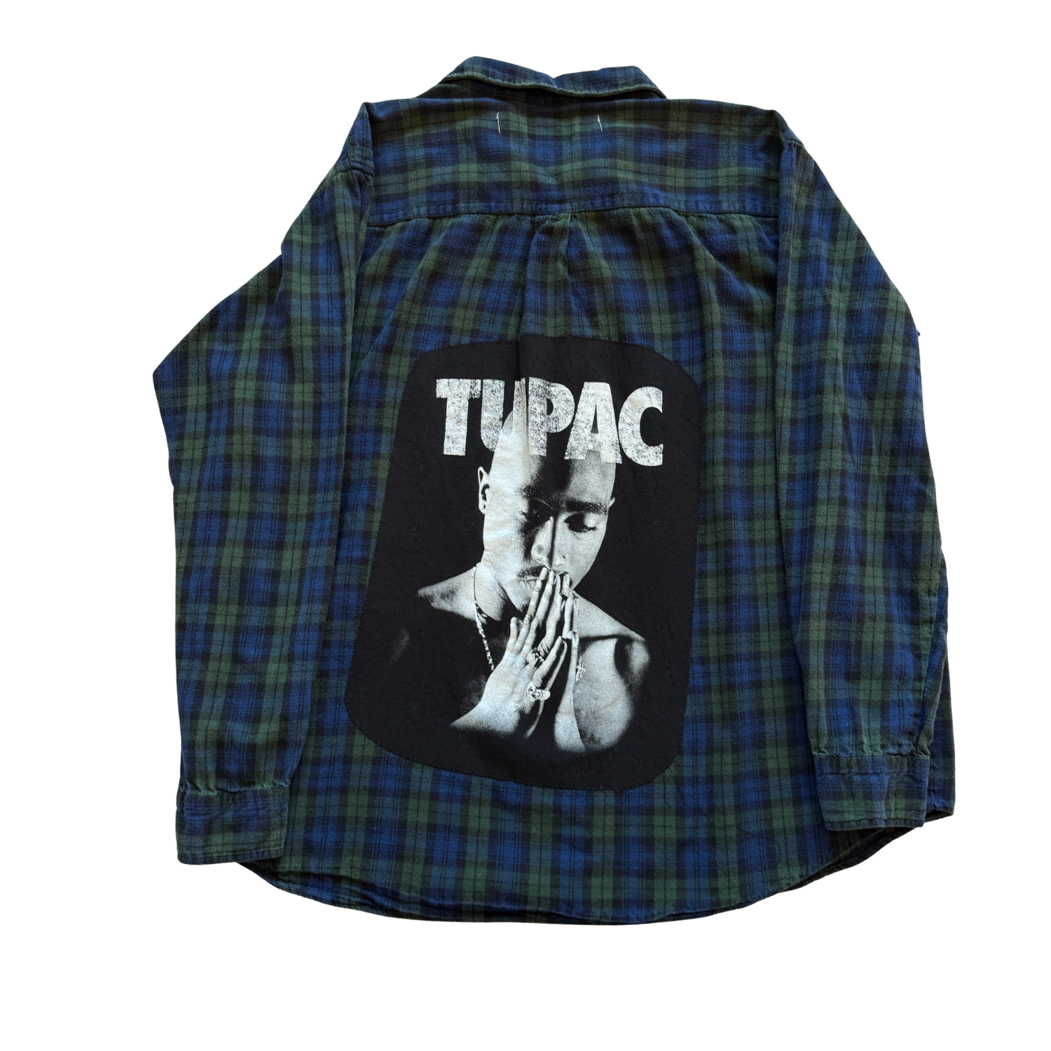 Each piece is a custom, one-of-a-kind flannel shirt, sourced and then reworked with authentic vintage graphics stitched onto the back.